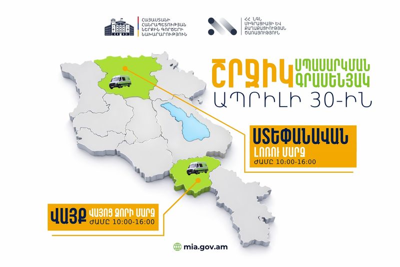 ՆԳՆ շրջիկ սպասարկման գրասենյակները ծառայություններ կմատուցեն Վայոց Ձորի և Լոռու մարզերում